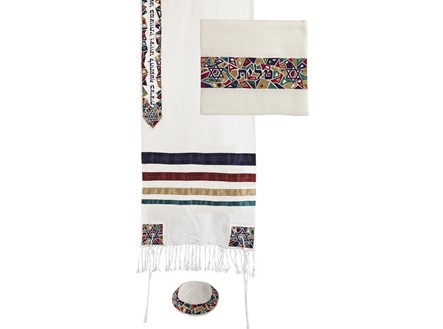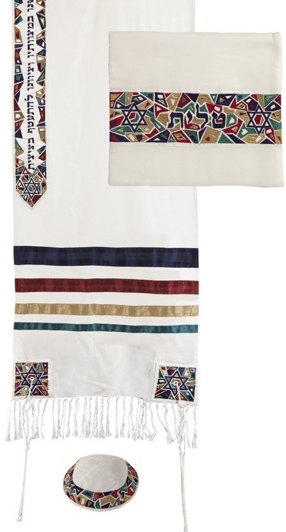 Yair Emanuel Raw Silk Tallit Magen David -Multi Color