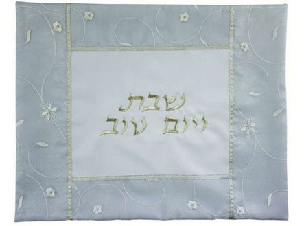 “Shabbat and Yom Tov”, embroidered in the center. The Hebrew words are bordered