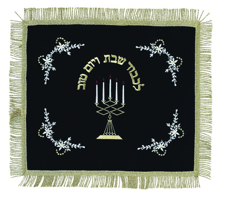 of Shabbat and Yom Tov”, are embroidered on top, in a semi-circle with gold
