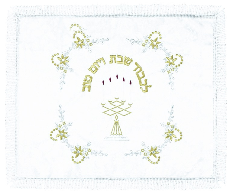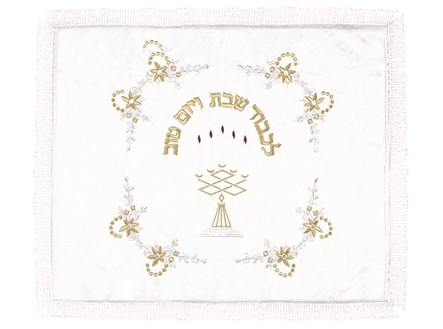of Shabbat and Yom Tov”, are embroidered on top, in a semi-circle with gold
