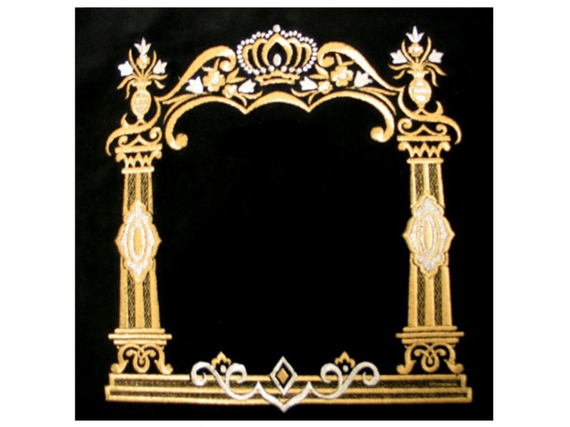 side and an exquisite canopy with a crown in its center, this tallis/tefillin bag has a majestic