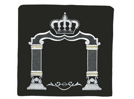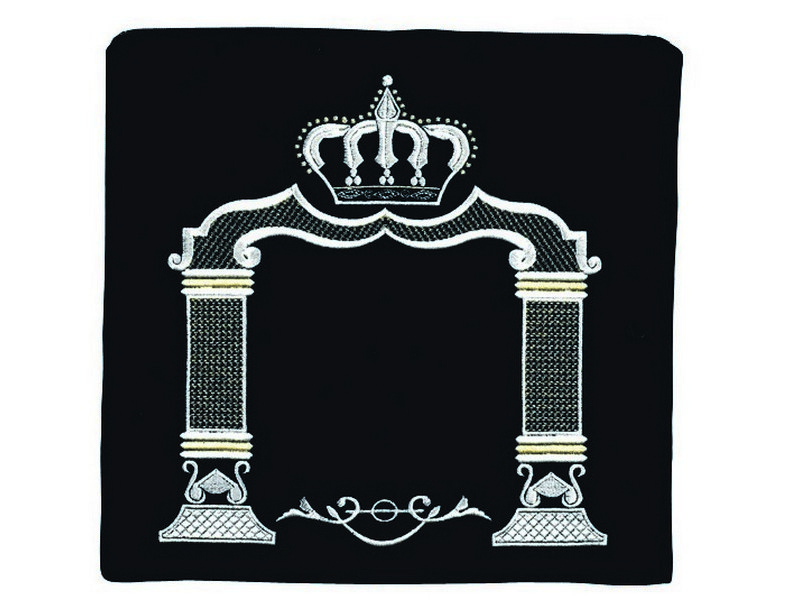 This velvet tallit/tefillin bag is elegantly embroidered with a uniquelystyled canopy. A Geometrically styled canopy is embroidered with gold and silver colored tread. The flattened arc had a majestic crown above it, creating a regal yet modern look.This bag is available as a tallit and tefillin set as wellas separate Tallit and Tefillin sizes.This bag has the option of adding custom embroidery withHebrew or English characters. An optional clear plastic slip-on protective bagis available for this bag.