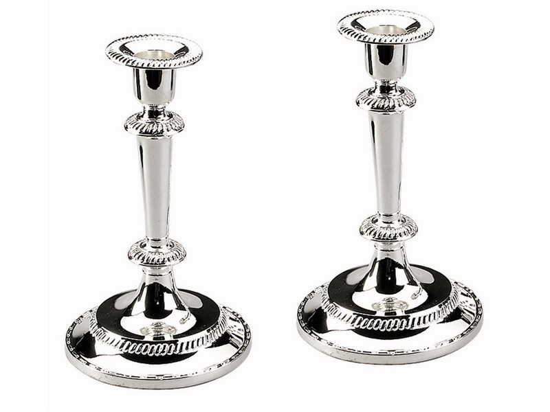These classic silver plated candlesticks are sure to enhance your Shabbat table! Crafted with a smooth silver plated finish these candlesticks have a pretty shape with a wide round base. A rope design embellishes the base and cup as well as along the stick, creating a beautiful, timeless look.