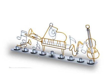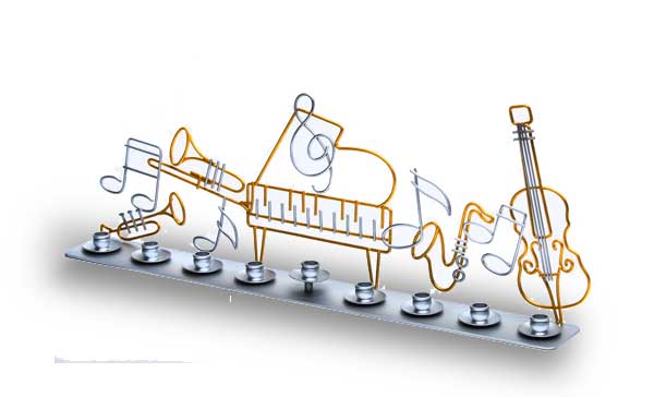 This metal and wire menorah will surely add meaning to the singing done on the Hanukah holiday. Designed with silver and gold colored wired notes in a dancing fashion as a background, this menorah is perfect for those music lovers out there as well!