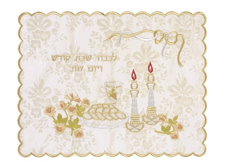 Tov”, which means “In honor of Shabbat and Yom Tov”, are embroidered above the