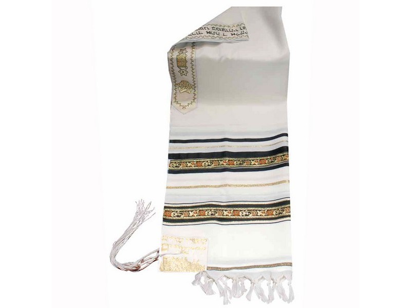Decorative Ribbon Wool Tallit - Black/Gold (1)