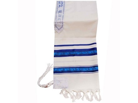 This group of Decorative Ribbon Wool Tallits has solid blue