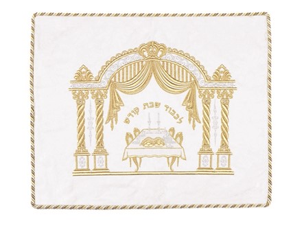 the Kiddush is being recited. A special designed challah cover adds glory to