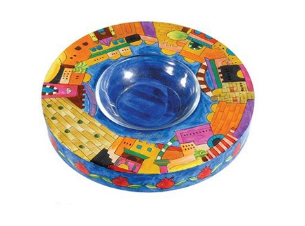 Emanuel Wood Painted Honey Plate Jerusalem