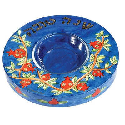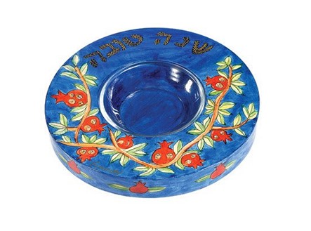 Emauel Wood Painted Honey Plate Pomegranates