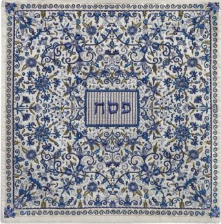 Embroidered Matzah Cover and Afikomen Bag - Oriental Blue