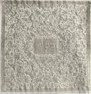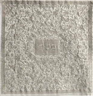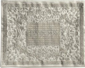 Embroidered Matzah Cover and Afikomen Bag - Oriental Silver