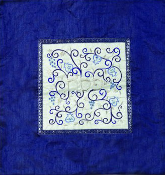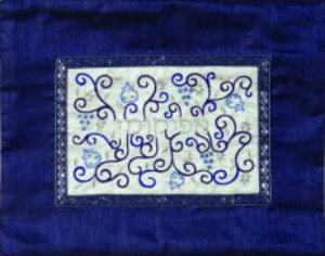 Embroidered Matzah Cover and Afikomen Bag Pomegranates White on Blue / Red