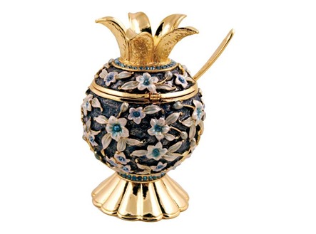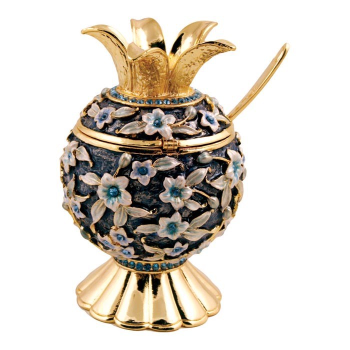Floral Jeweled Honey Dish, Blue