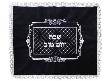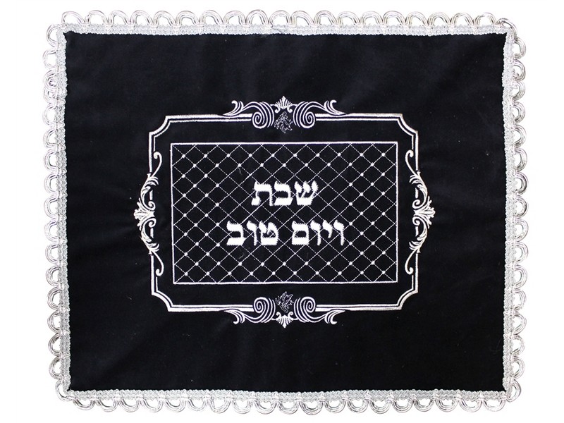 “Shabbat v’Yom Tov”, “Shabbat and Yom Tov”, is embroidered in the center. The