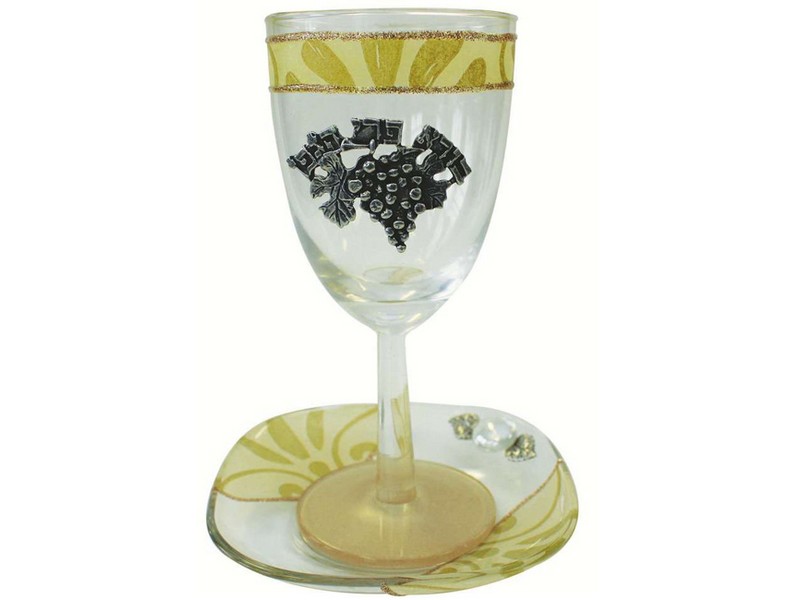 Glass Kiddush goblet comes complete with a coordinating glass plate.
