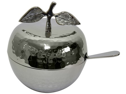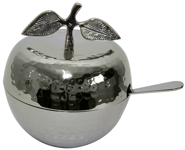 Crafted from hammered nickel, this honey dish is shaped as an apple and