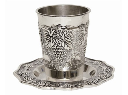 cup will enhance your Kiddush ceremony, Shabbat and Yom Tov table. This nickel plated Kiddush cup has a