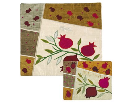 Raw Silk Embriodered Matzah Cover - Pomegranates Design