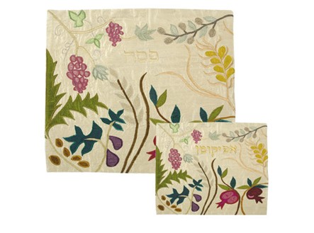Raw Silk Embriodered Matzah Cover - Seven Species
