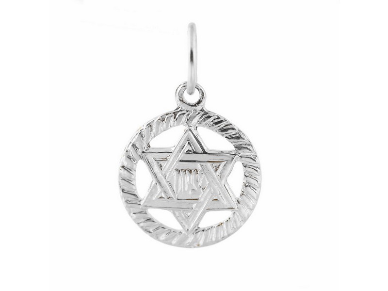 rope design, the star of David has a raised outline and a filled center. The word ‘Zion’ is embossed in the center.