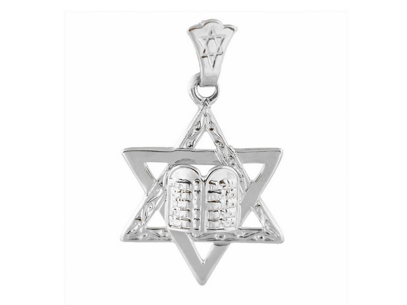 dimensional tablet of the ten commandments. Pendant hangs from a bale which has