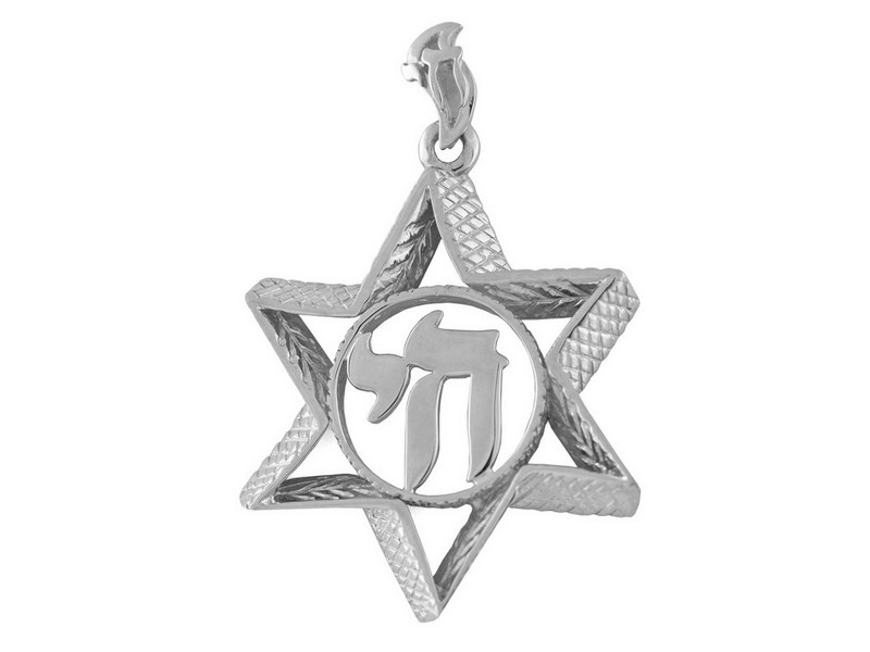 Made of sterling silver, this chai pendant features a 3-dimensional star
