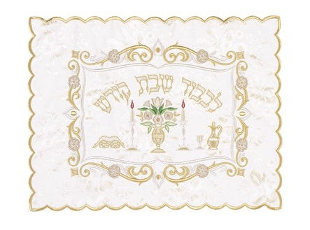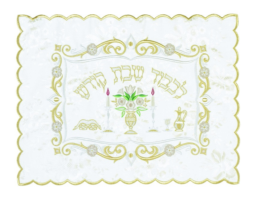the Holy Shabbat” are embroidered in an outline design with gold colored