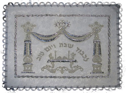 the Kiddush is being recited. A special designed challah cover adds glory to