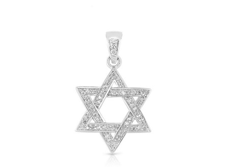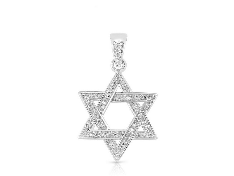 designed as a woven star of david. Encrusted with cubic zirconia white diamonds