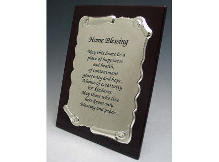 Wood & Silver Plated Home Blessing in English