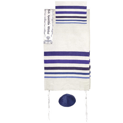 Yair Emanuel Raw Silk Tallit Set -Blue